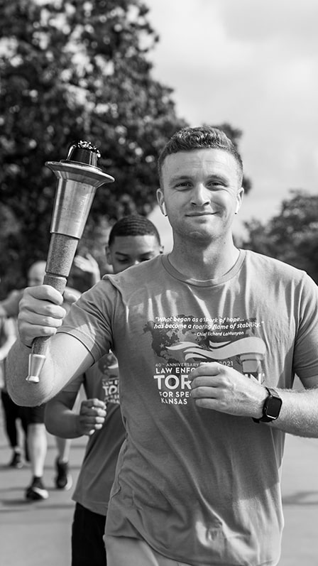 I started at the Riley County Police Department in 2013 and began volunteering at the LETR events. In 2018, I took over as the RCPD liaison and began planning and coordinating my local LETR events. As a child, I got to watch my older brother compete in sports through Special Olympics and accomplish things he never thought were possible before SOKS was a part of his life. He has since retired from competition but enjoys assisting me with directing traffic and riding in my patrol at the Torch Run each summer. I look forward to each event and seeing the joy they bring to the local community, SOKS athletes and my LEO co-workers.